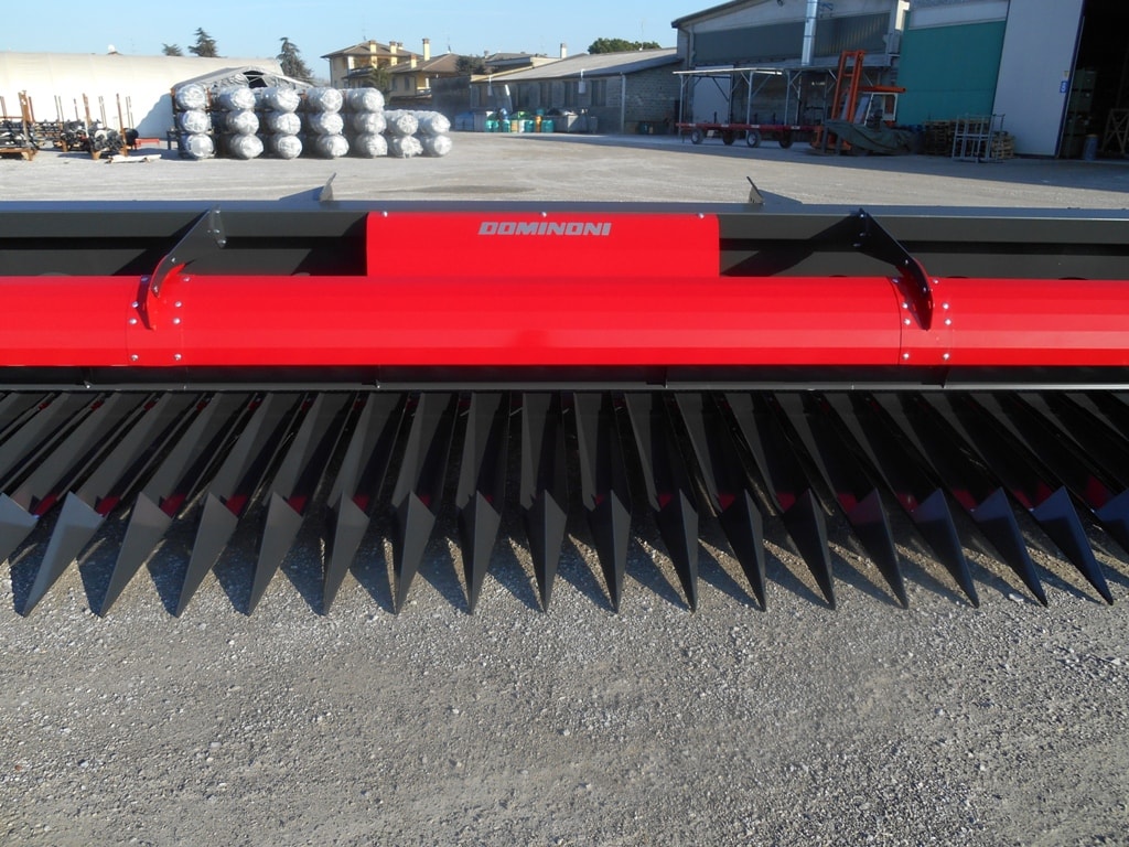 - Низкий профиль жатки Доминони обеспечивает подбор культуры даже в тяжелых условиях.